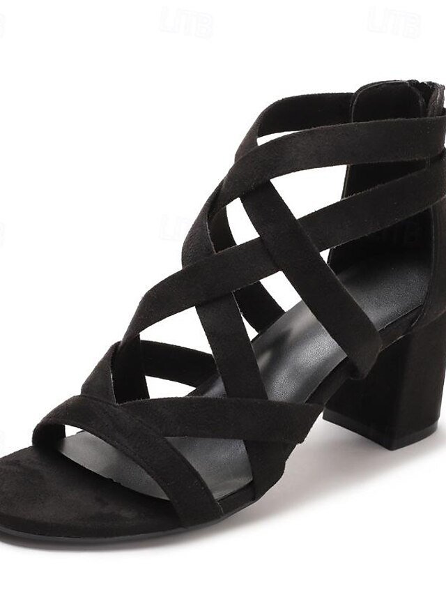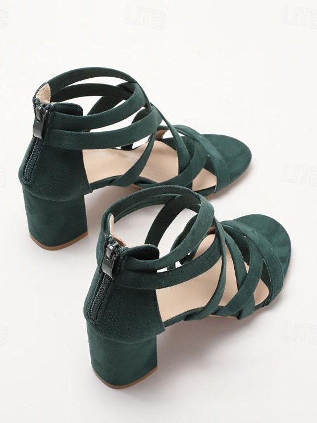 Discover elegance with Gladiator cross-strap block heel sandals. Perfect for parties & daily wear. Available in Black, White, Green. Shop now!