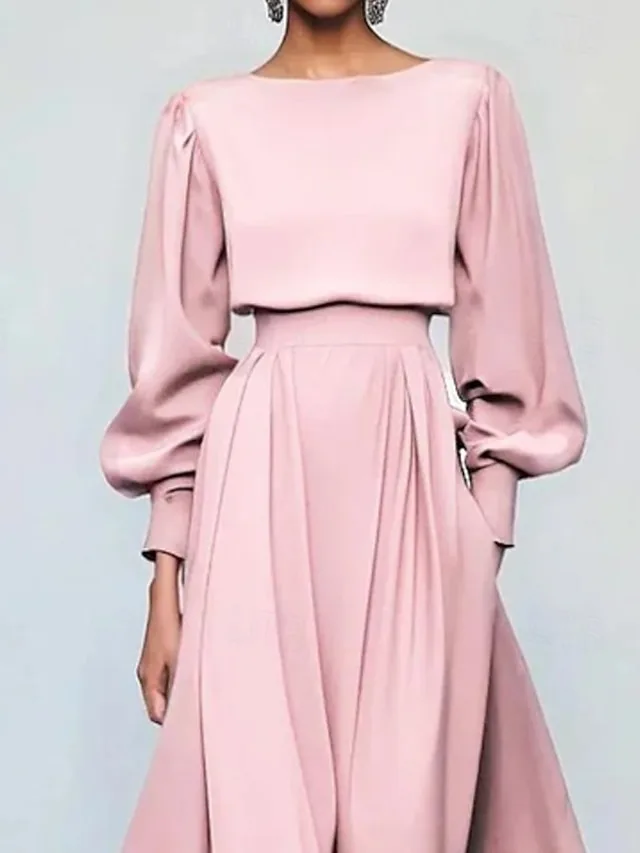 Mit seiner normalen Passform, den langen Ärmeln und der schmeichelnden Midi-Länge ist dieses Kleid eine edle Wahl für Frühling und Herbst. Der schlichte, einfarbige Look wirkt zugleich zeitlos und feminin.