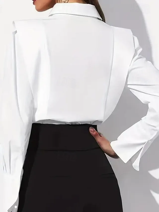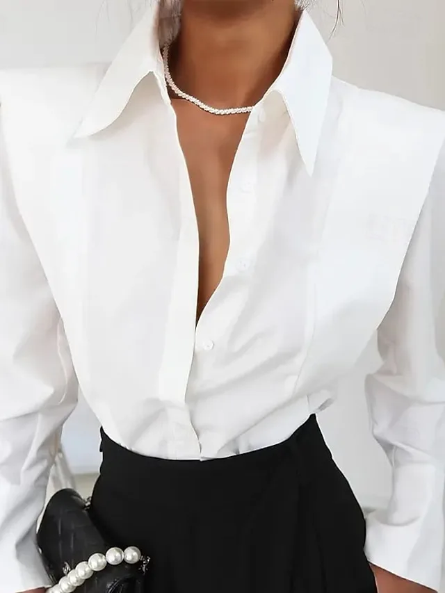 Elegant Normale Einfarbig Hemdkragen Langarm Bluse