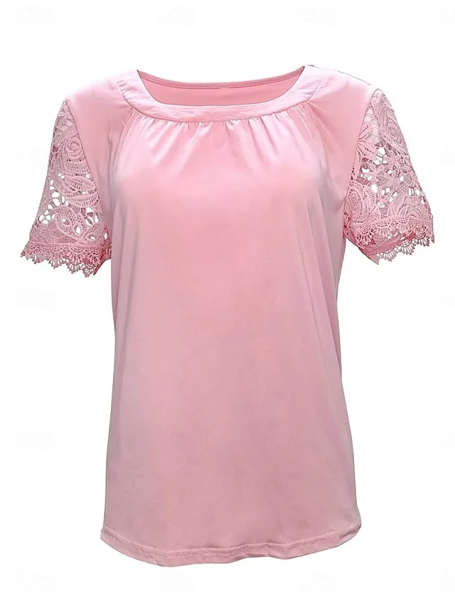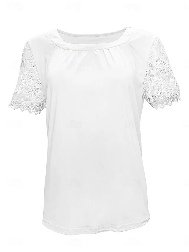 Elegantes Spitzenoberteil mit Rundhalsausschnitt und Kurzarm. Vielseitig für Alltag, Urlaub und Ausgehen. Jetzt entdecken.