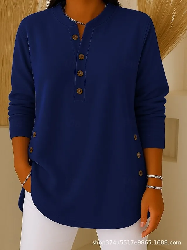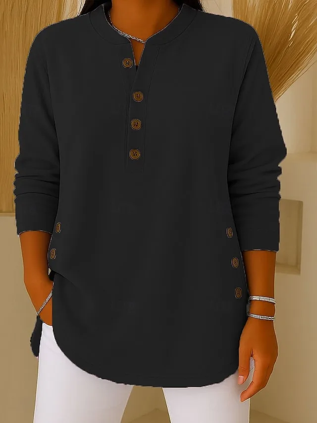 Zeitloses Damen T-Shirt mit V-Ausschnitt und Knöpfen. Elegant, bequem und vielseitig für Alltag, Wochenende und Ausgehen.