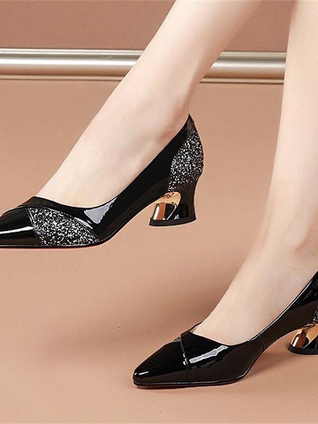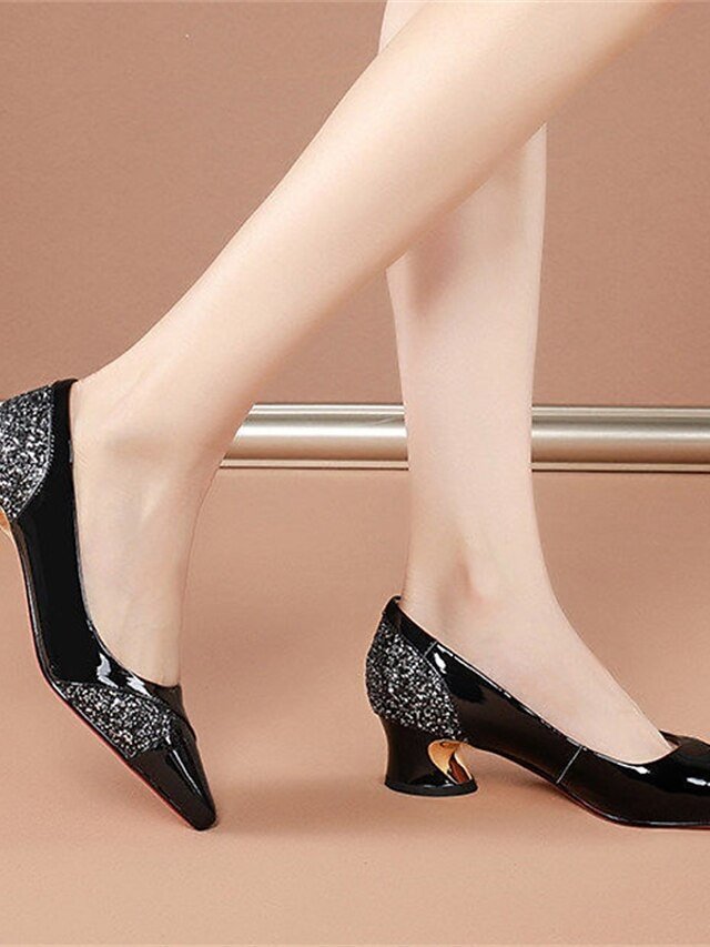Elegant Patent Glitter Pointed Toe Block Heels