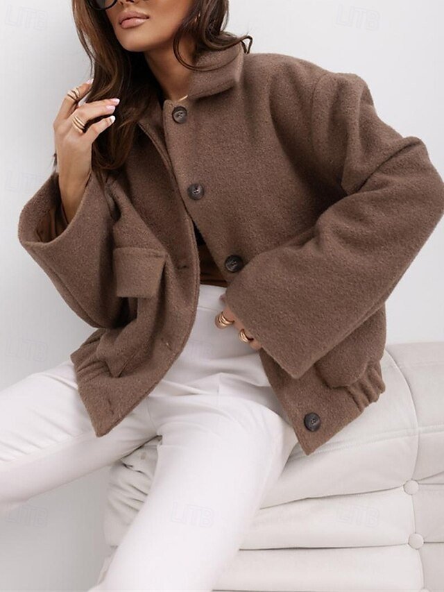 Discover elegance with our Regular Fit Plain Lapel Coat. Perfect for casual outings. Available in Black, Apricot, Coffee for a sophisticated spring look.