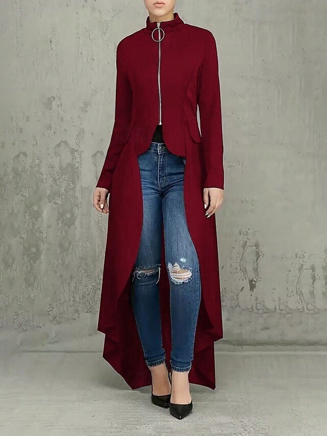 Stay chic with our elegant stand collar jacket. Perfect for winter, this regular fit, long sleeve, irregular hem jacket is a wardrobe must-have.