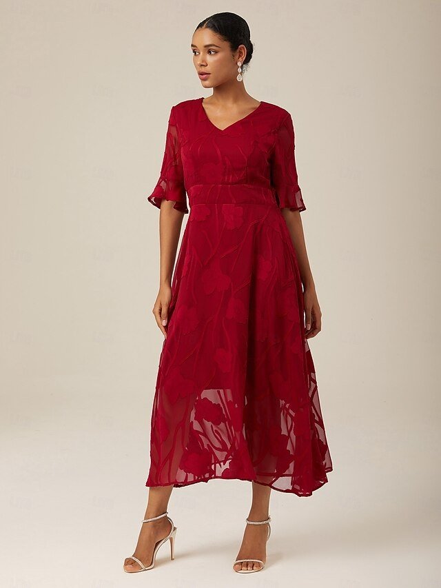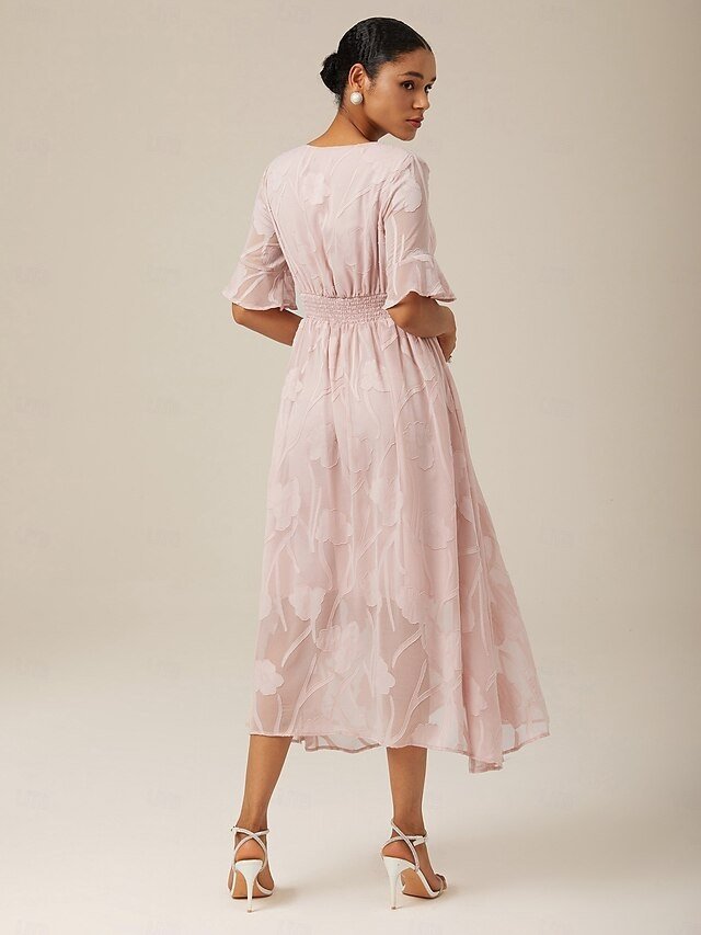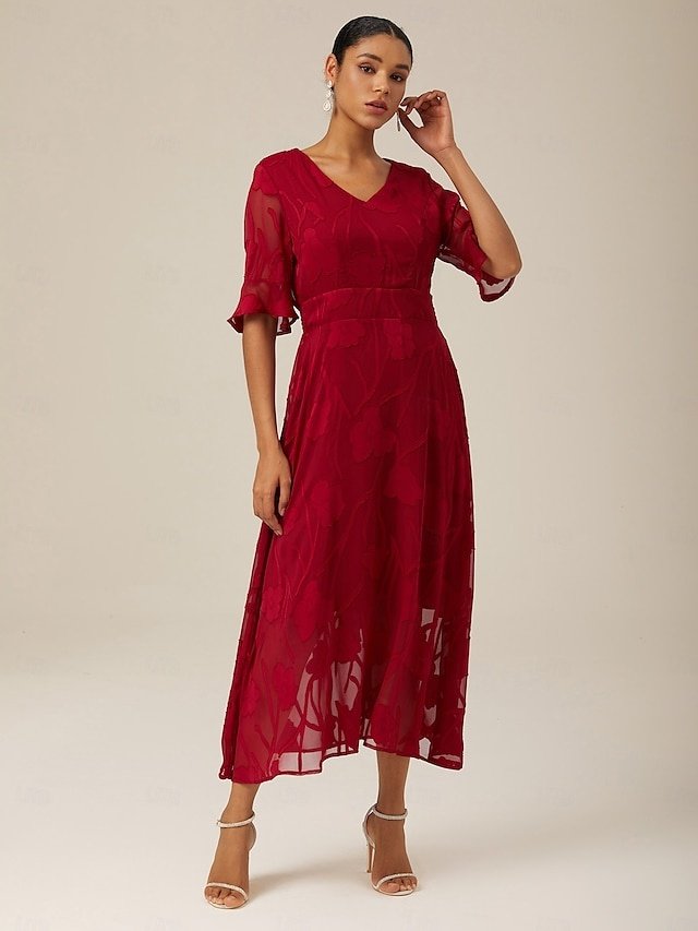 Discover elegance with our Maxi Dress, perfect for weddings and cocktail parties, featuring a V neck and flutter sleeves in lace fabric.