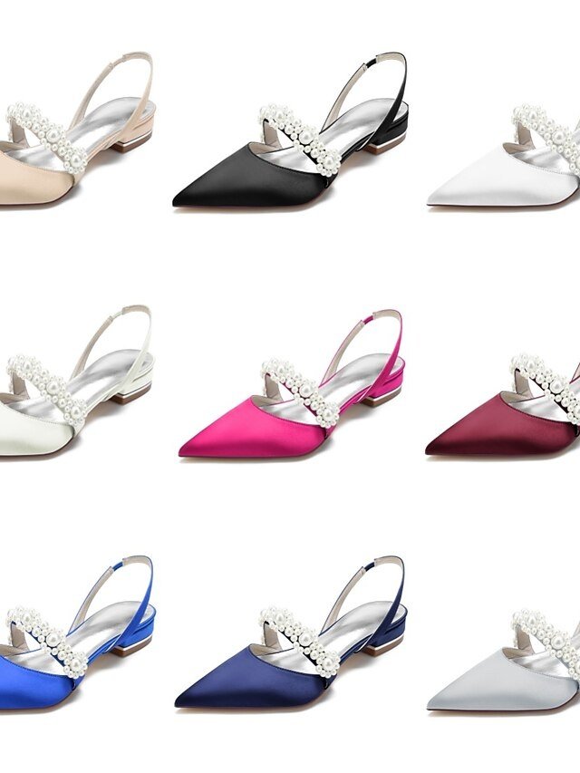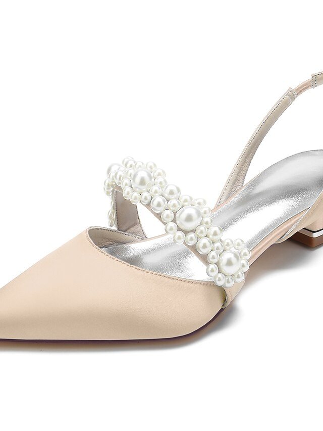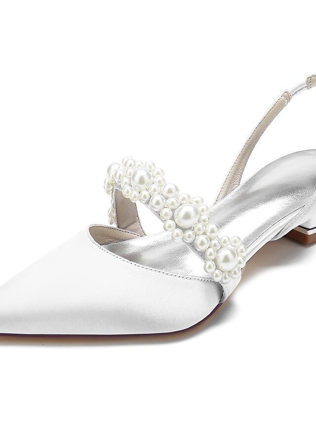 Discover elegant satin wedding shoes with pearl embellishments. Perfect low heel sandals for sophisticated weddings and special occasions.