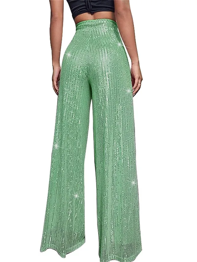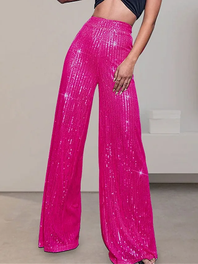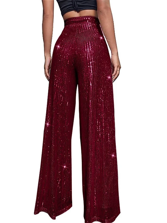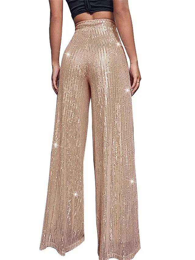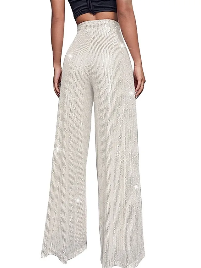 Elegante High-Waist Pailletten-Hose mit weitem Bein. Funkelnder Look für Party, Club und Abend. Jetzt entdecken.