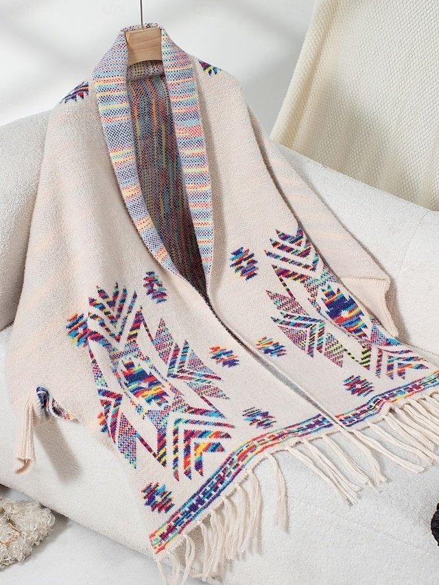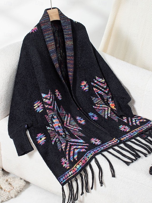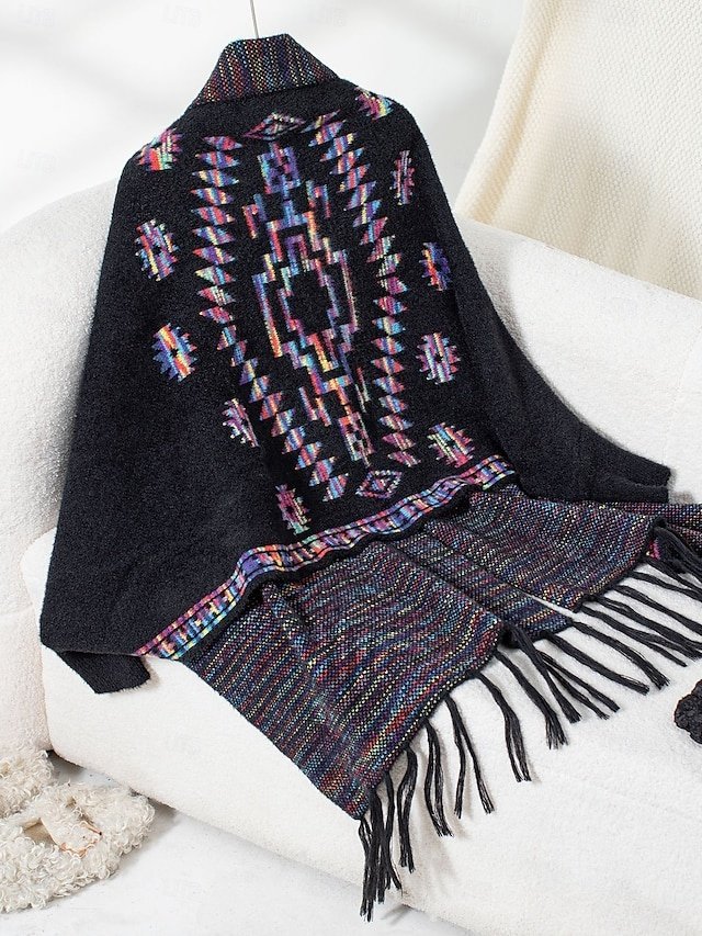 Step into the realm of elegance and style with our exquisite cardigan that effortlessly blends fashion with function. Tailored for the modern woman, this sophisticated piece is perfect for both formal work settings and relaxed weekend getaways. With its luxurious knit fabric and striking geometric print, this cardigan is a timeless addition to your autumn and winter wardrobe.