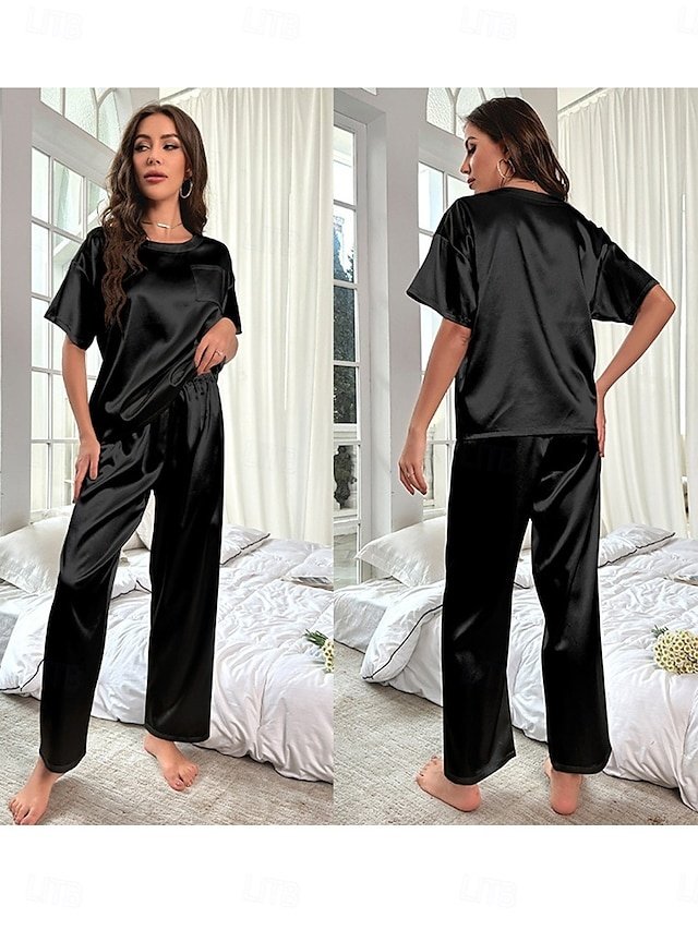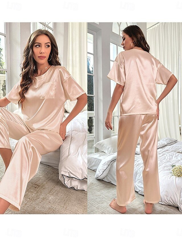 Embrace luxury at home with our Fashion Loose Pure Crew Neck Short Sleeve Summer Pajamas, perfect for style and comfort.