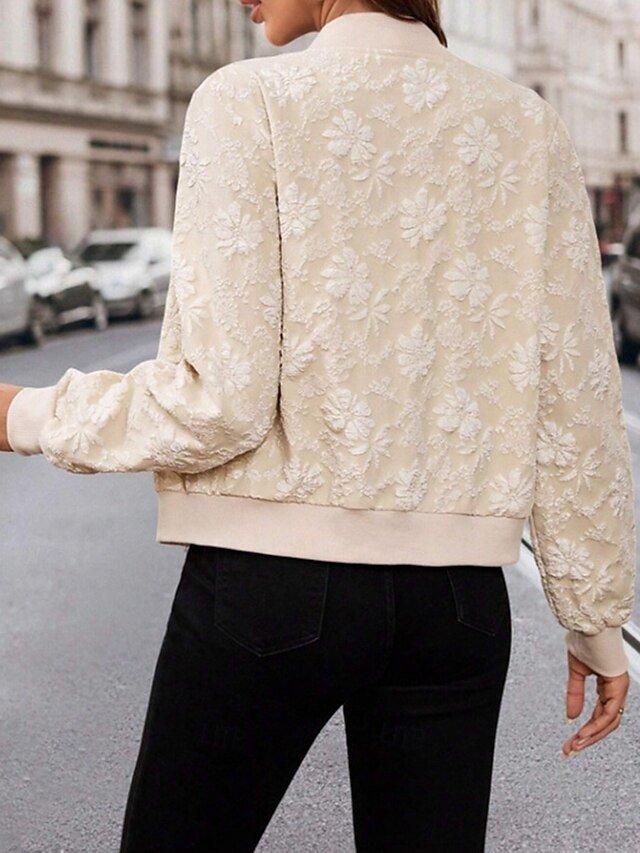 Elevate your style with our Fashion Floral Notch Lapel Jacket. Perfect for fall & winter, offering comfort & elegance in a chic beige hue.