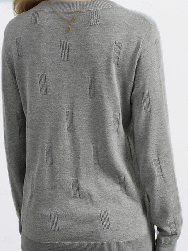 Step into the sophisticated charm of our exquisite knit top, crafted for the modern woman who appreciates both style and comfort. This solid grey piece effortlessly combines versatility with chic appeal, making it an essential addition to your spring and fall ensembles.