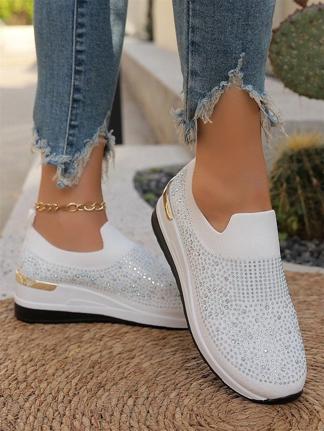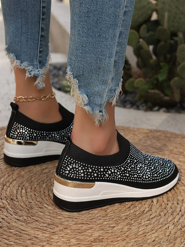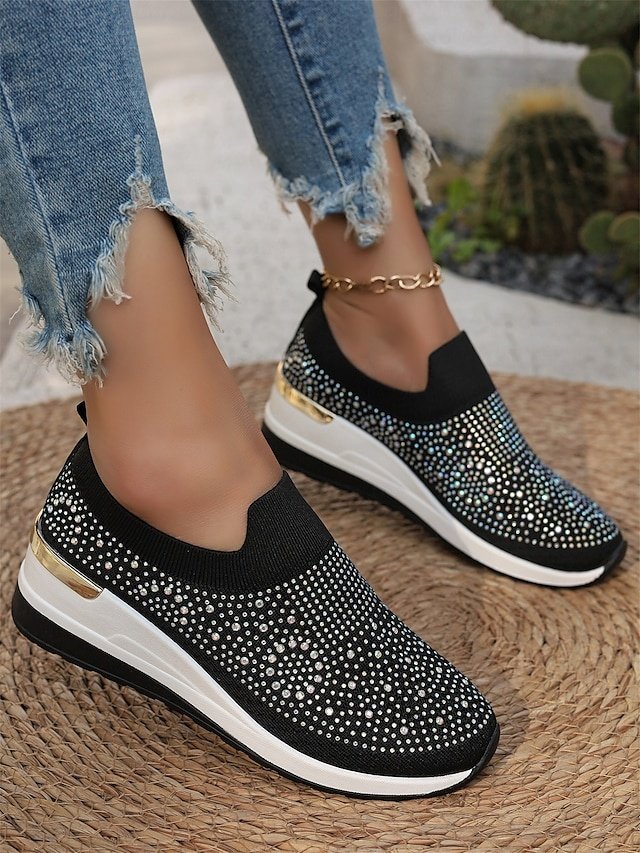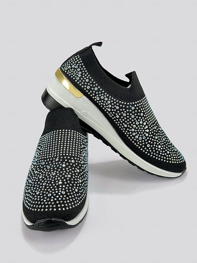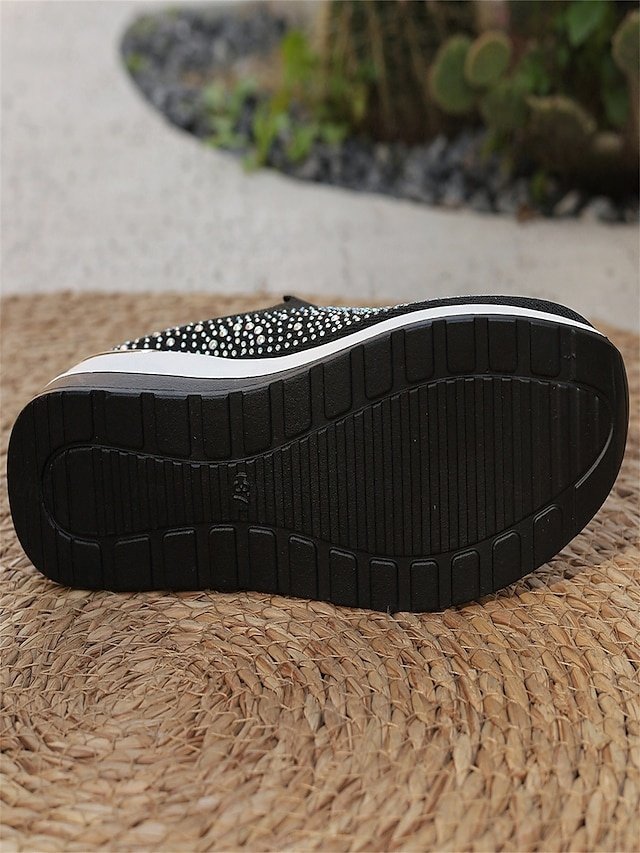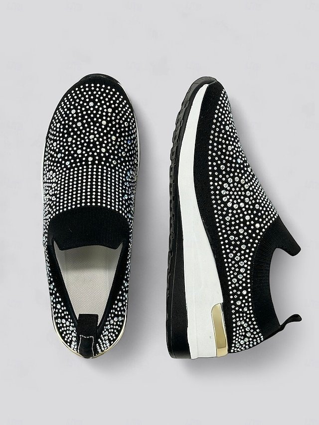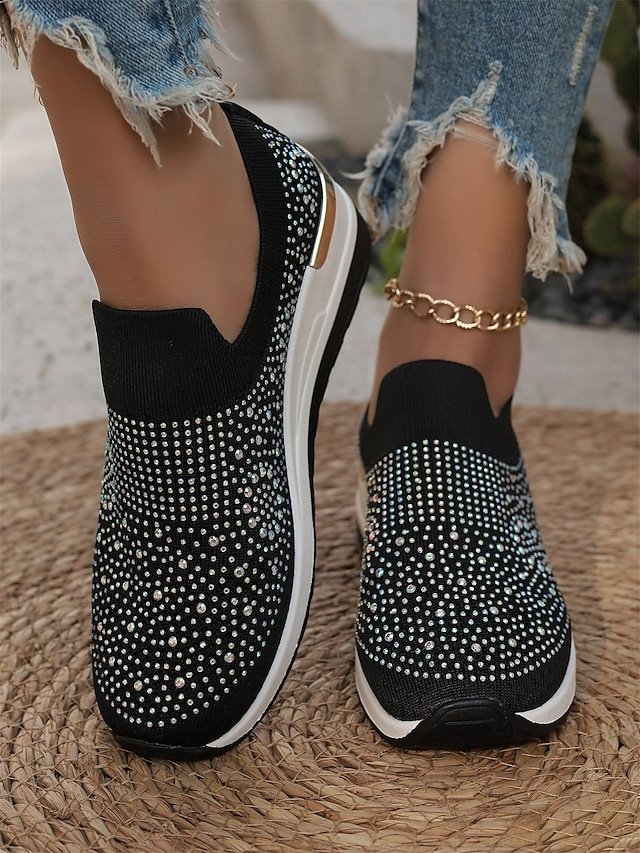 Shop dazzling Rhinestone Black Slip-On Sneakers for ultimate comfort and style. Perfect for casual wear. Lightweight and sparkly fashion.