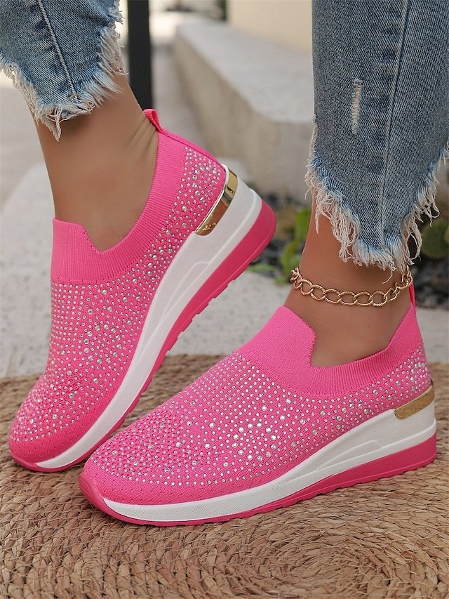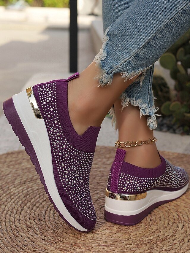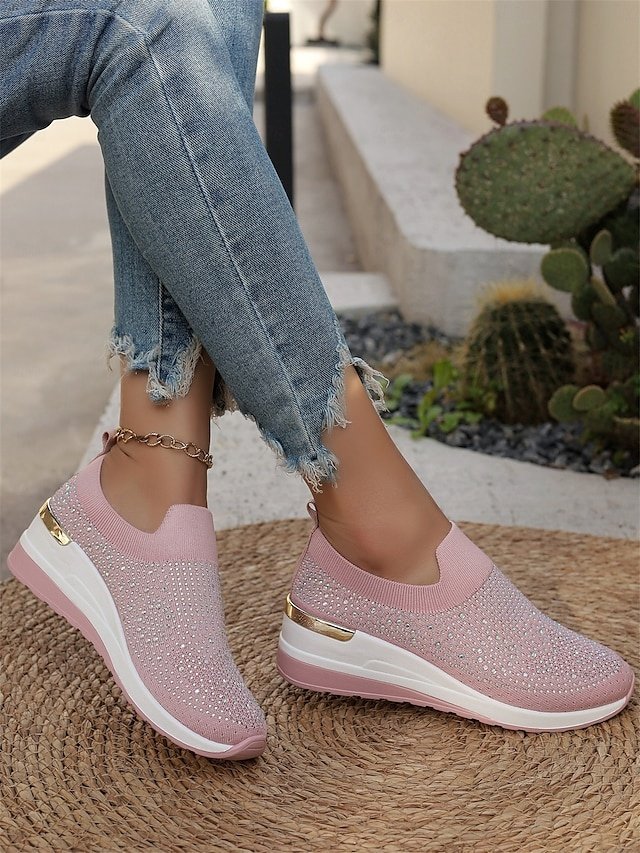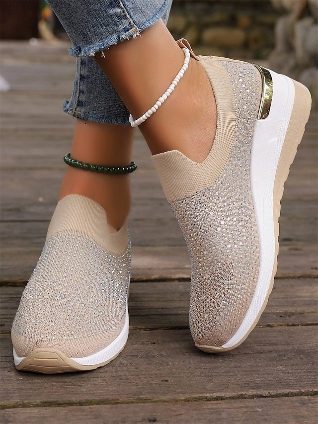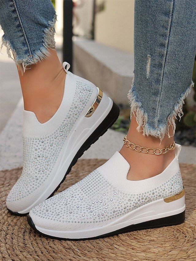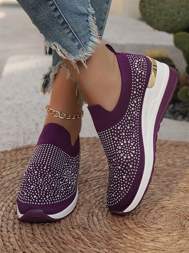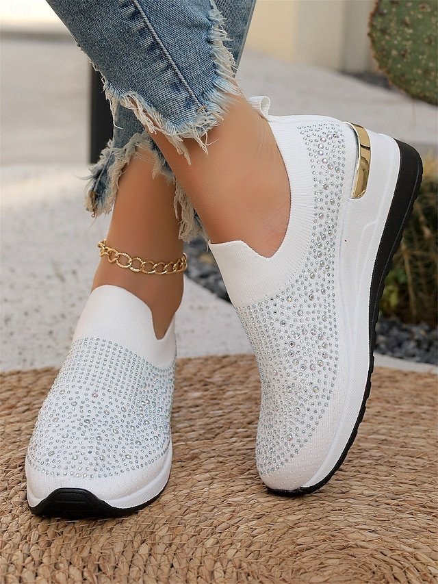 Shop dazzling Rhinestone Black Slip-On Sneakers for ultimate comfort and style. Perfect for casual wear. Lightweight and sparkly fashion.