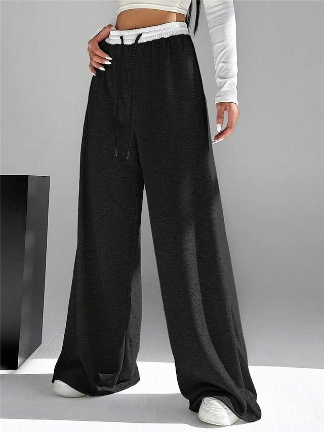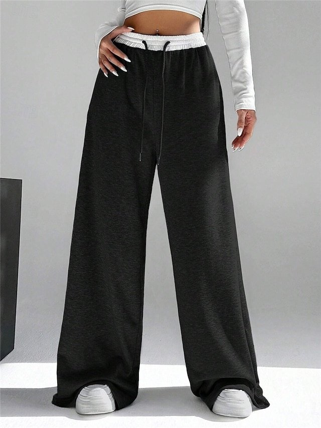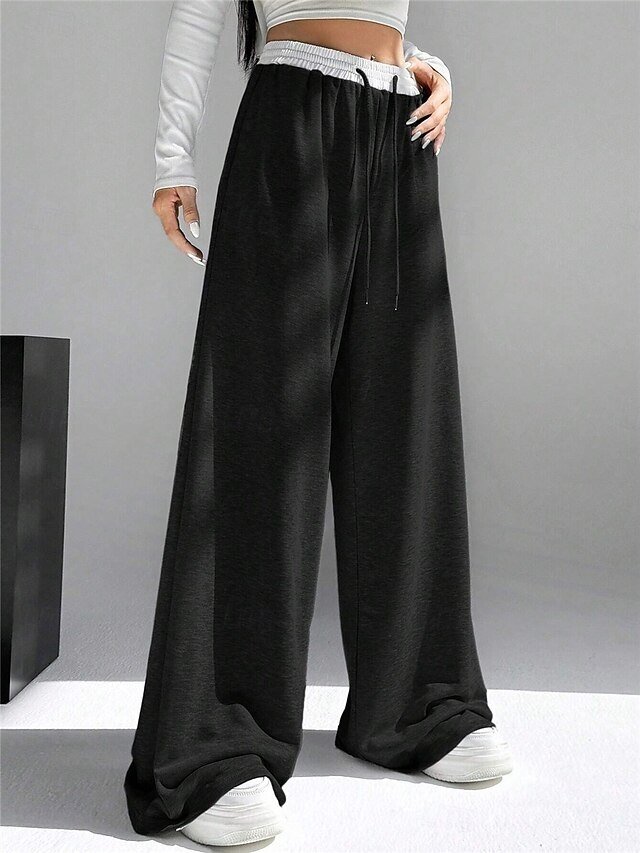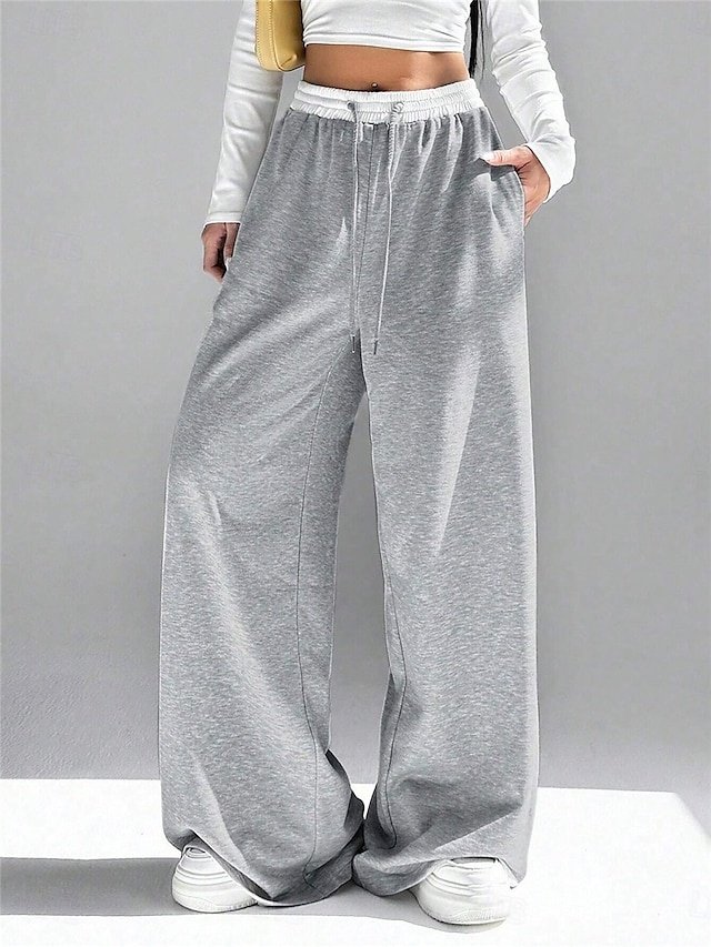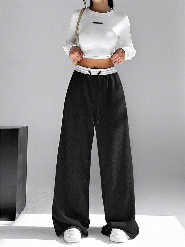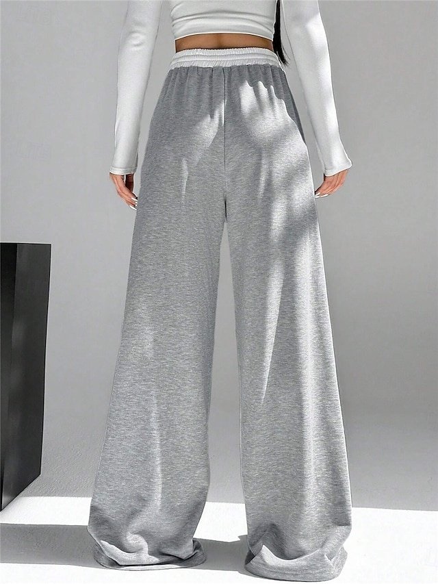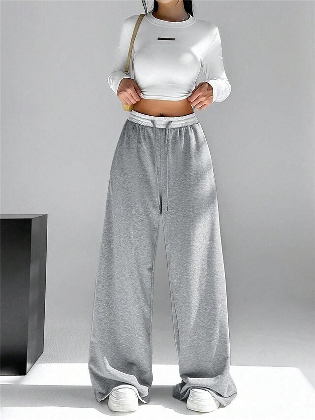 Discover chic wide leg sweatpants with high waist, perfect for streetwear. Available in Black & Gray. Sizes S-XL. Elevate your style effortlessly.