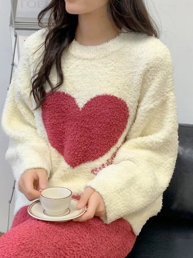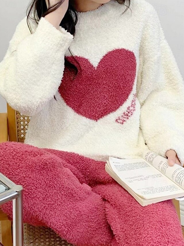 Discover ultimate warmth and style with our Heart Fleece Pajama Set, perfect for chic lounging at home during fall and winter.