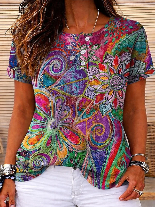 Stilvolles Damen-Oberteil mit Grafik-Print und Rundhalsausschnitt. Vielseitig für Alltag und Freizeit – jetzt entdecken.