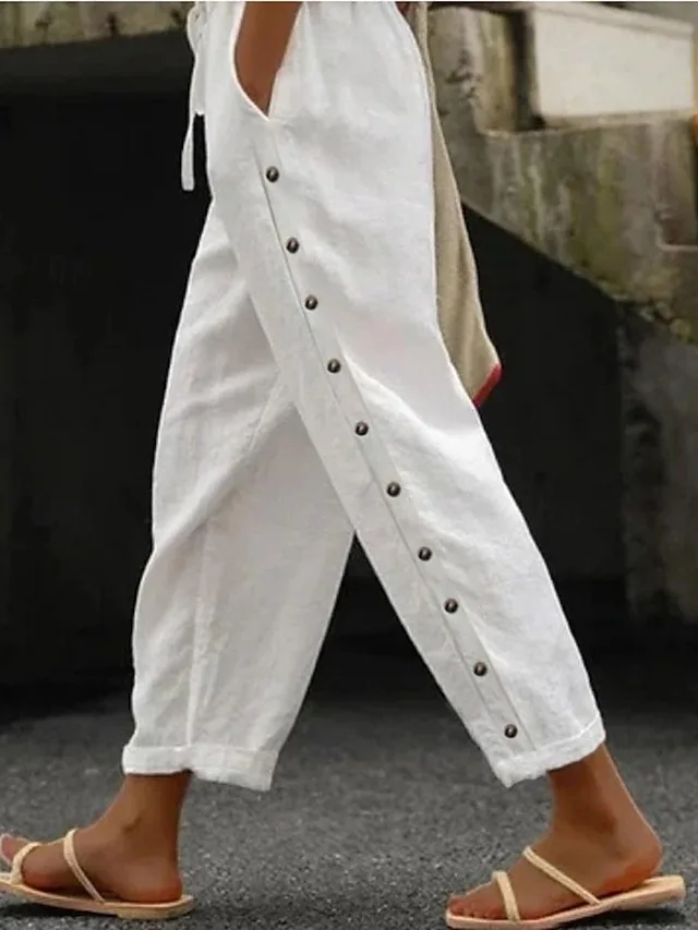 Stilvolle Damenhose aus 100% Baumwolle mit Kordelzug und Seitentaschen. Jetzt entdecken und entspannt kombinieren.