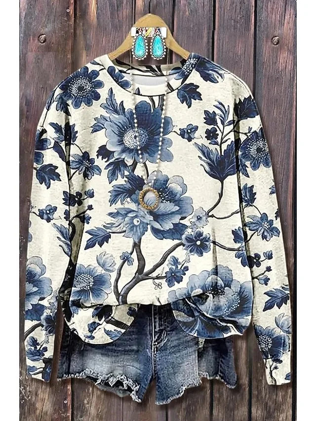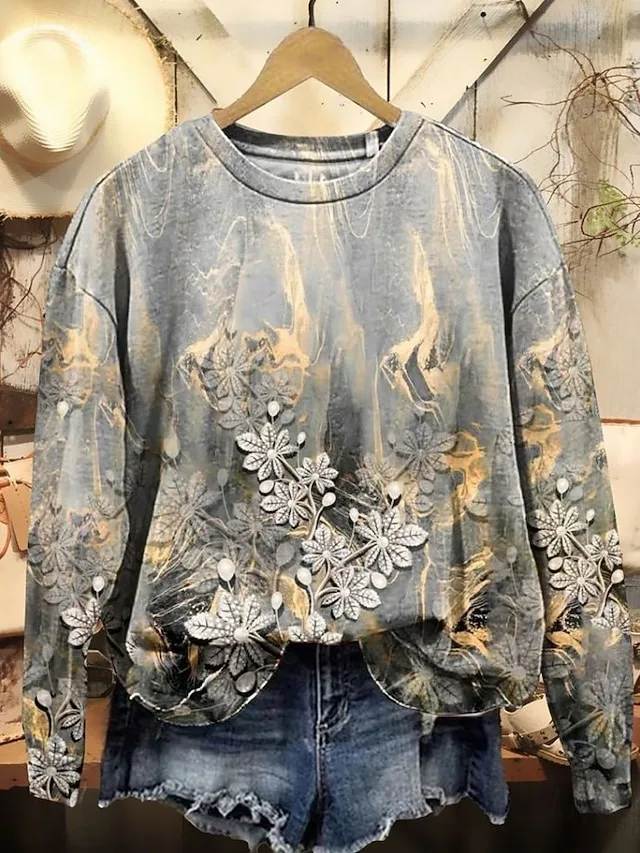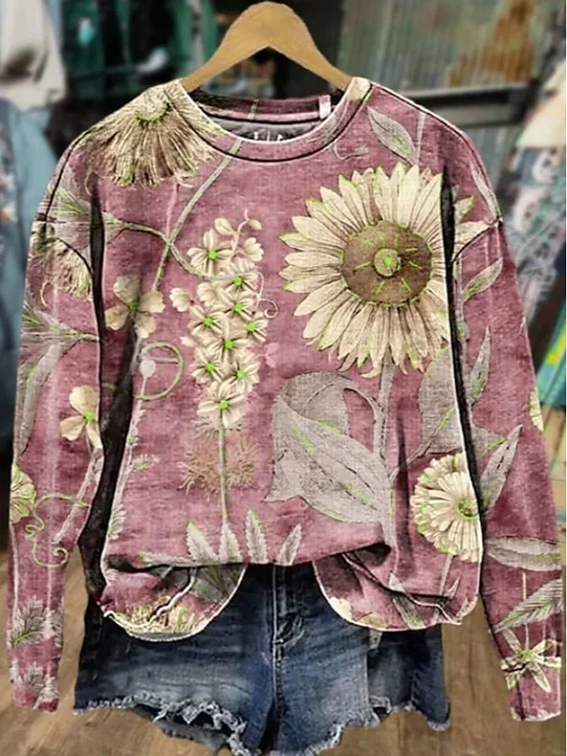 Lässiges Damen Sweatshirt mit Blumen-Print, Rundhalsausschnitt und lockerer Passform. Jetzt stilvoll durch Frühling, Herbst und Winter.
