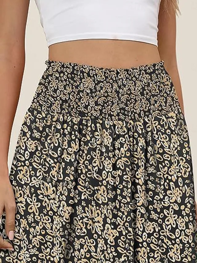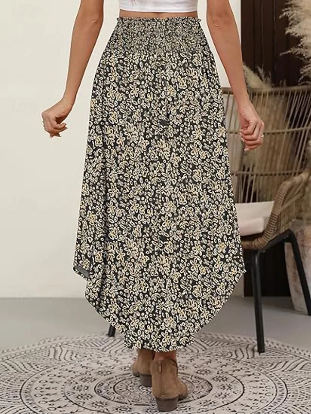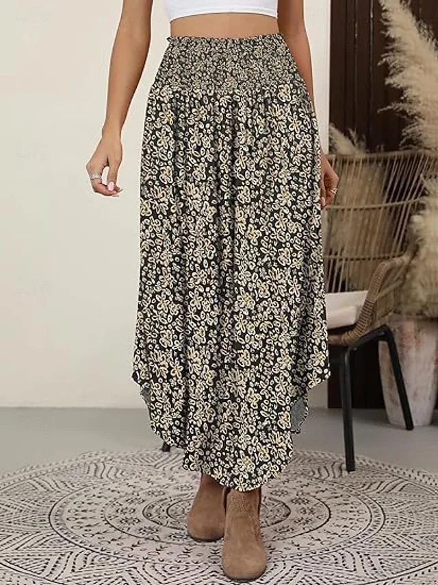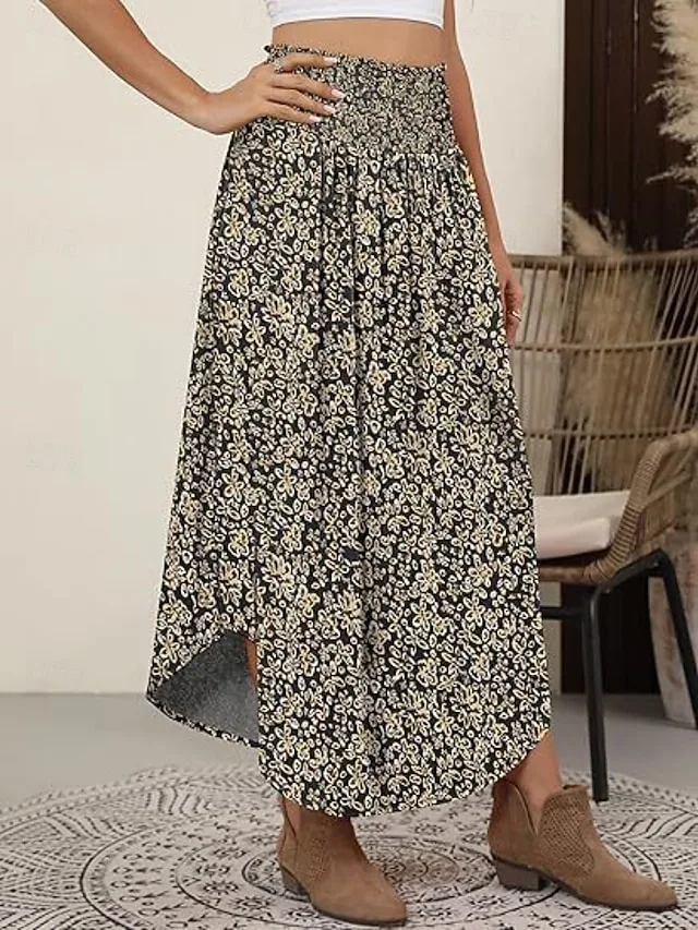 Eleganter, dehnbarer Maxi-Rock mit Blumenmuster und gerafftem Design. Perfekt für Freizeit, Urlaub und Ausgehen – jetzt entdecken.