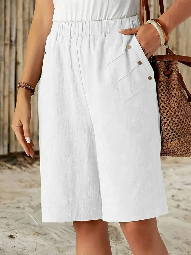 Lässig Locker Einfarbig Hohe Taille Ärmellos Knielang Shorts