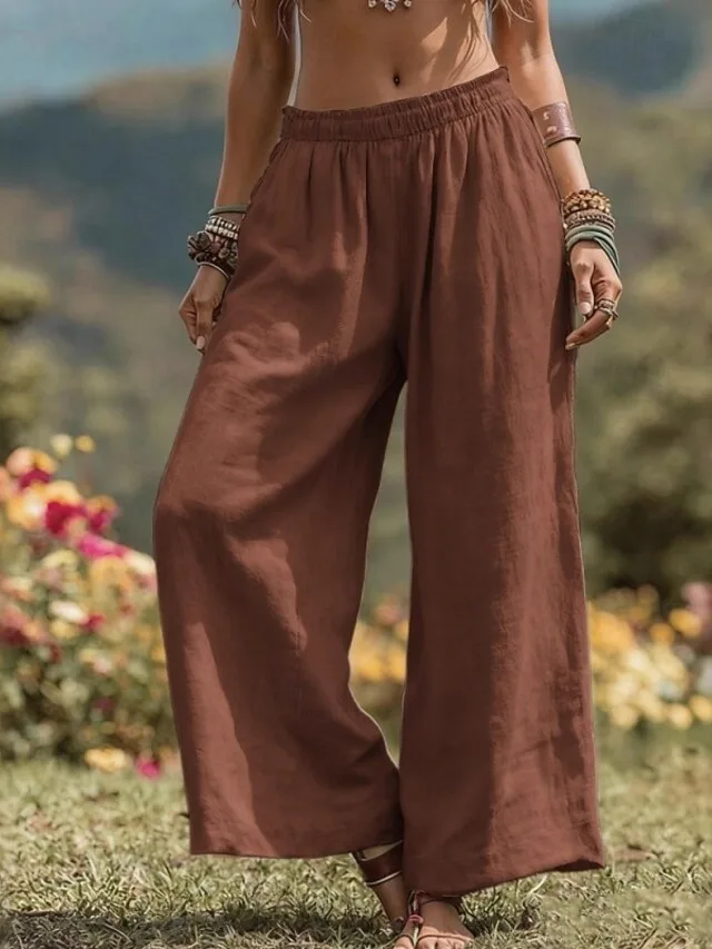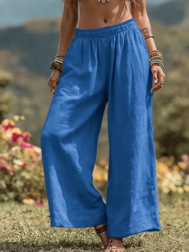 Leichte, bequeme Weitbein-Hose mit elastischem Bund. Ideal für Alltag, Urlaub und Strand – jetzt stilvoll entdecken.