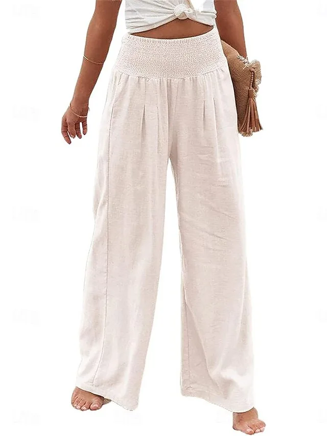 Leichte Baumwoll-Leinen Hose mit Taschen und elastischem Bund. Komfortabel, atmungsaktiv und perfekt für entspannte Sommertage.
