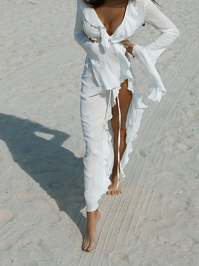 Eleganter Badeanzug-Überwurf mit Rüschen und V-Ausschnitt. Perfekt für Strand, Spa und Urlaub – jetzt stilvoll entdecken.