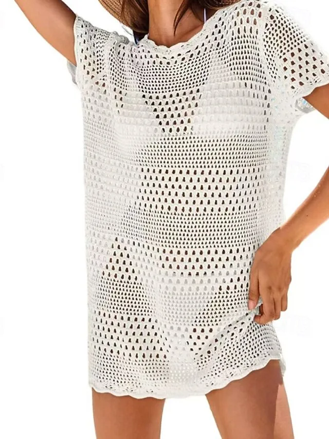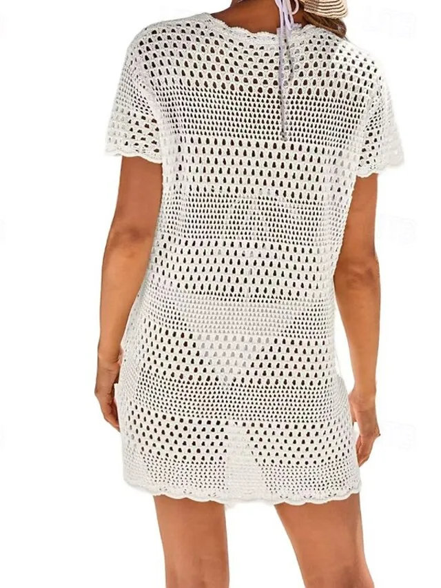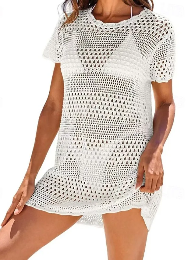 Verleihen Sie Ihrem Strand-Look eine mühelos elegante Note mit diesem gehäkelten Überwurf. Die feine Struktur und der luftige Schnitt schaffen eine stilvolle Balance aus Komfort und Raffinesse – perfekt für Urlaub, Pool und entspannte Tage am Meer.