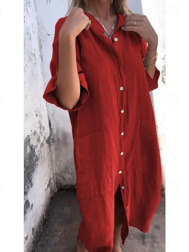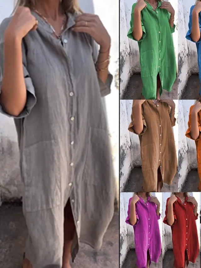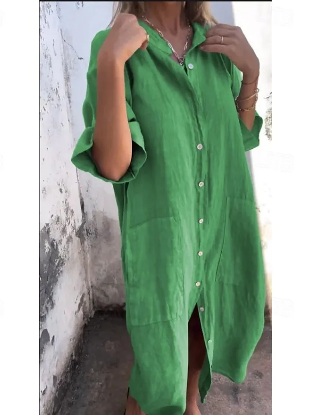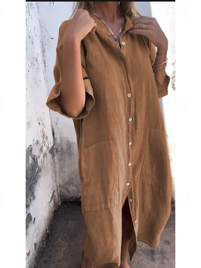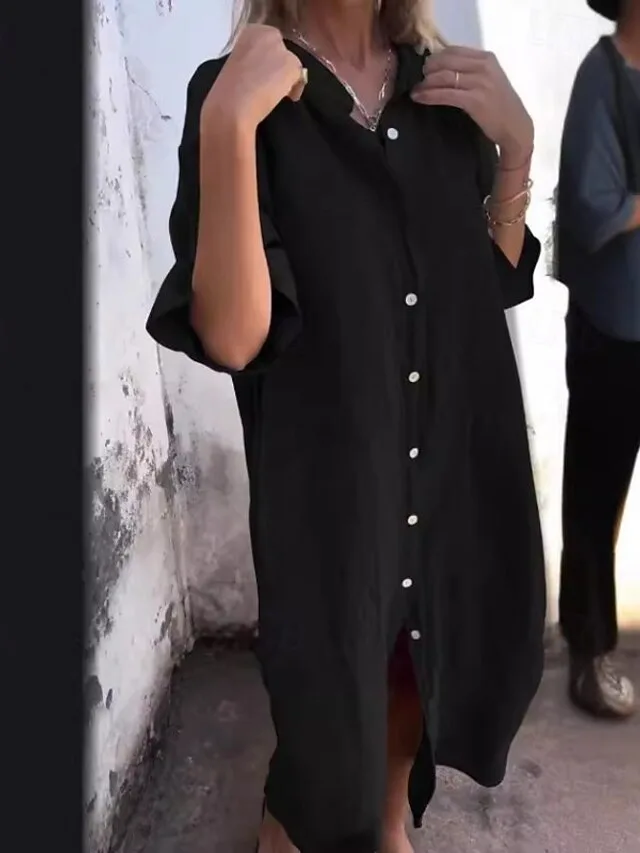 Lässiges Maxikleid mit Hemdkragen und lockerer Passform. Ideal für Frühling und Sommer – jetzt entdecken!