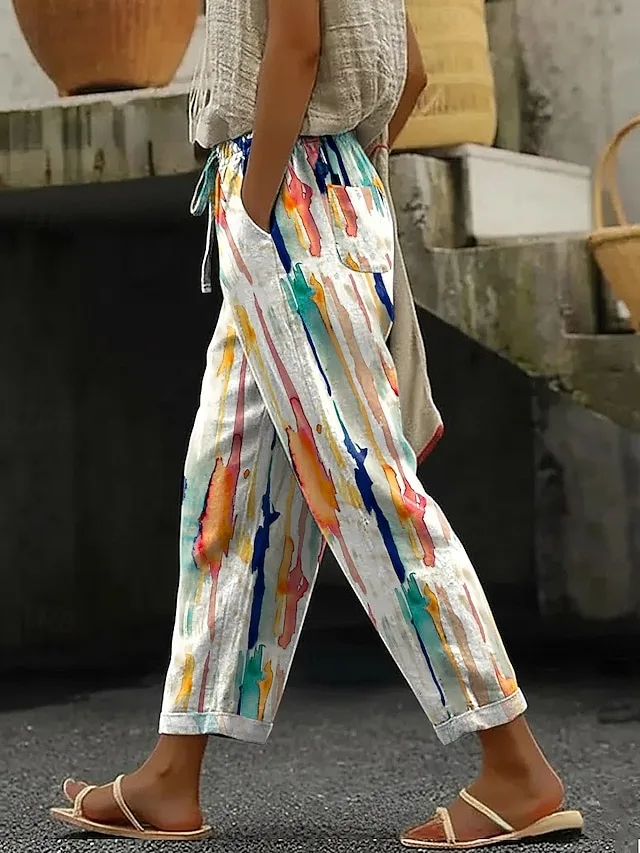 Leichte, lässige Hose mit Streifen, Kordelzug und Taschen. Jetzt stilvoll und bequem für Alltag und Urlaub entdecken.