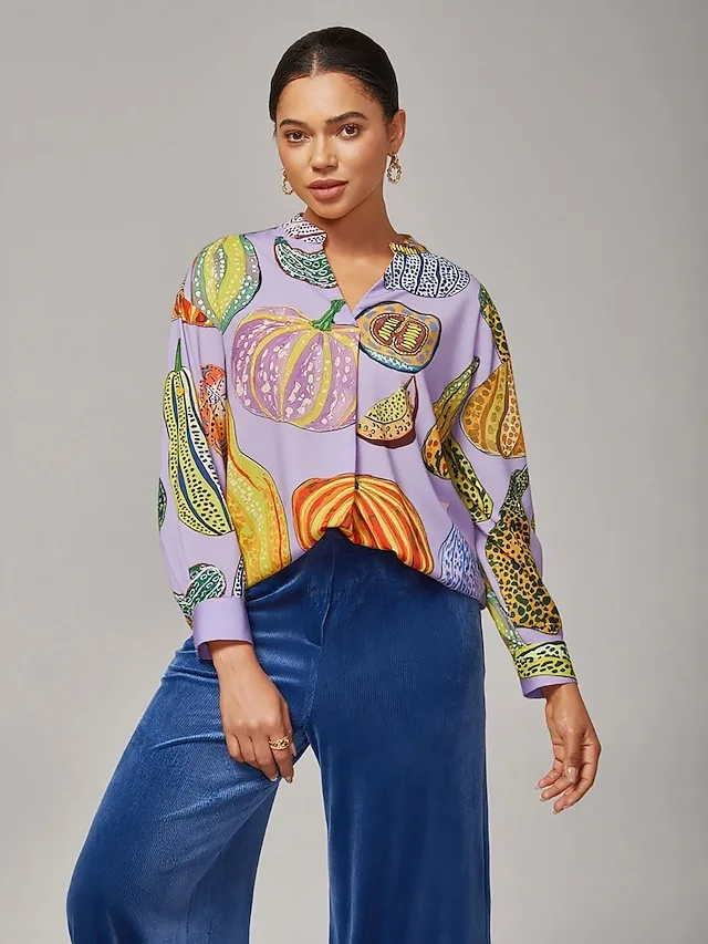 Elegantes Pullover-Shirt mit Kürbis-Print und lockerer Passform. Jetzt stilvoll durch Herbst und Alltag gehen.