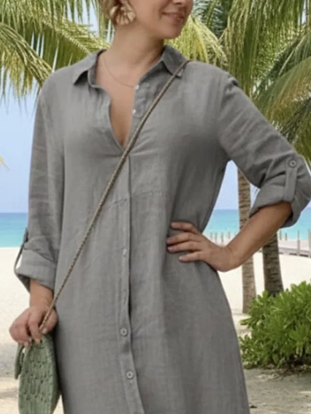 Entdecke das lässige Maxi-Kleid mit lockerer Passform und Reverskragen – stilvoll für Alltag und Übergangszeit. Jetzt bestellen.