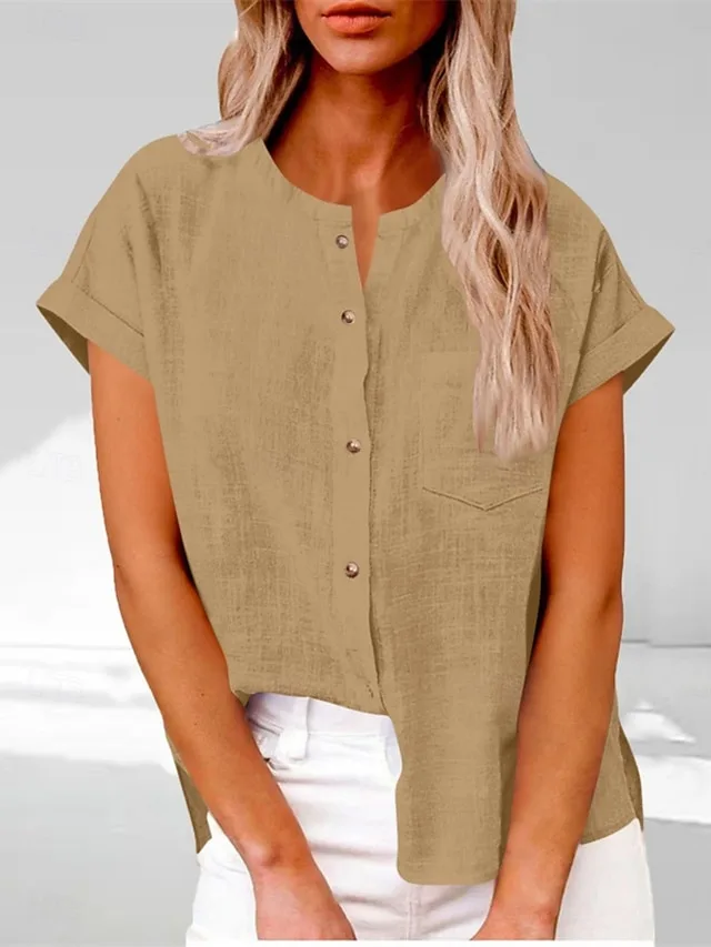 Elegante Hemdbluse mit Rundhals und Knöpfen. Leicht, bequem und vielseitig für Alltag, Urlaub und Freizeit. Jetzt entdecken.
