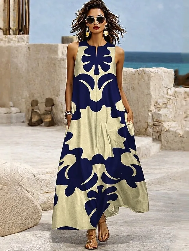Lässig Lose Grafik Neckholder Ärmellos Maxikleid