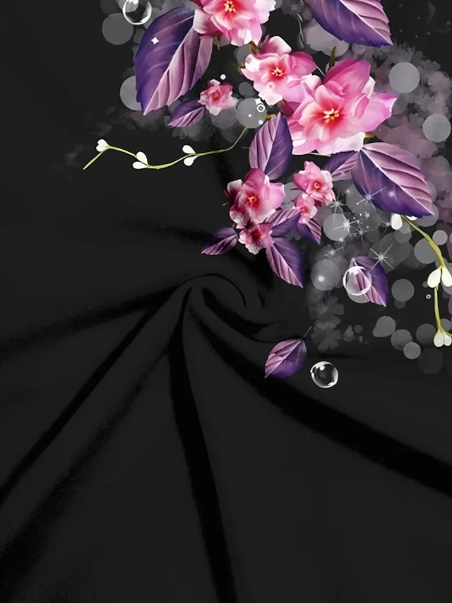Lässig Normal Blumen Rundhals Kurzarm Normales T-Shirt
