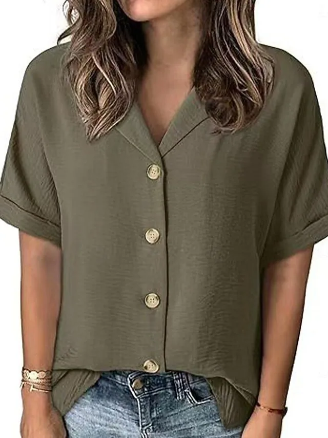 Elegante Damen Bluse mit V-Ausschnitt und kurzem Arm. Vielseitig für Alltag, Urlaub und Strand – jetzt entdecken.