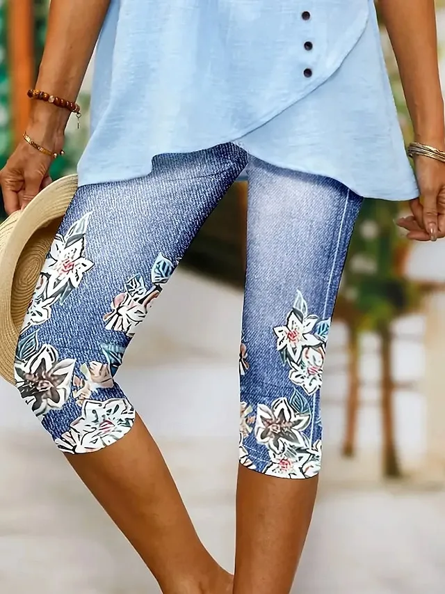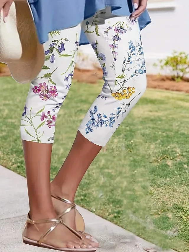 Leichte Capri-Leggings mit floralem Druck, mittlerer Taille und bequemer Passform. Perfekt für Sommer und Alltag – jetzt entdecken.