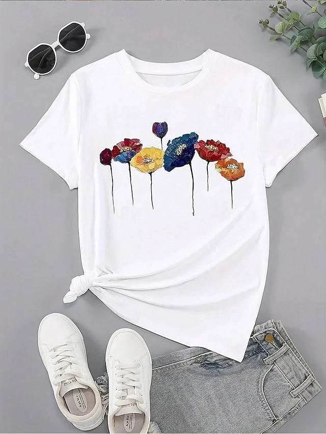 Lässiges Damen-Blumen T-Shirt aus 100% Baumwolle mit Mohn-Print. Ideal für den Sommer und den Alltag – jetzt entdecken.
