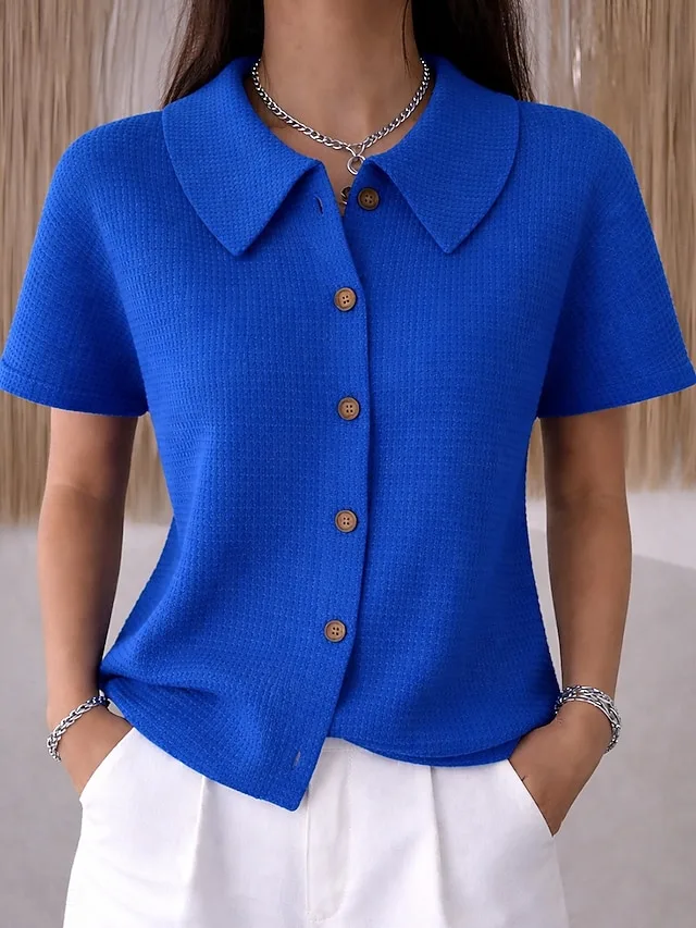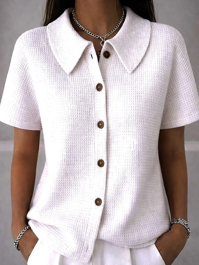 Stilvolles Waffelhemd mit klassischem Hemdkragen und normaler Passform. Perfekt für Alltag, Frühling und Sommer – jetzt entdecken.