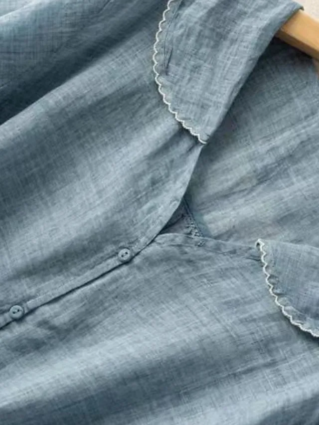 Leichte Baumwoll-Leinen Bluse mit Hemdkragen und Knopfleiste. Perfekt für Frühling und Sommer. Jetzt stilvoll entdecken.