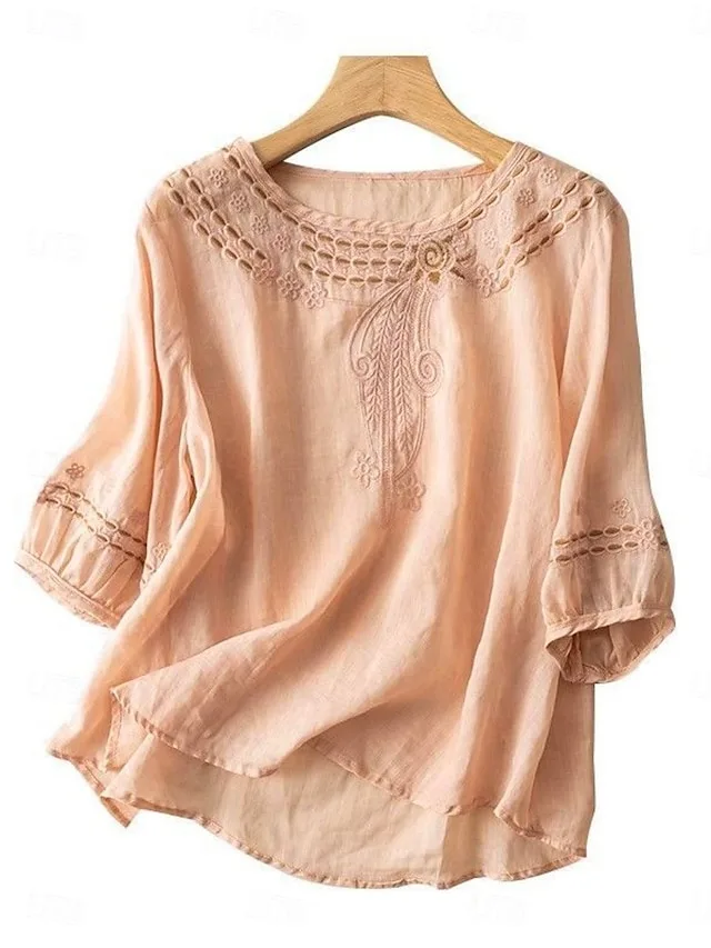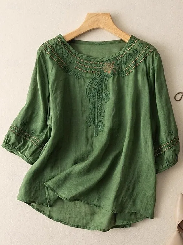 Lässig Normale Einfarbig Rundhals Dreiviertelarm Oberteil