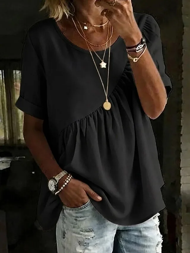 Lässig Normale Einfarbig Rundhals Kurzarm Normales T-Shirt