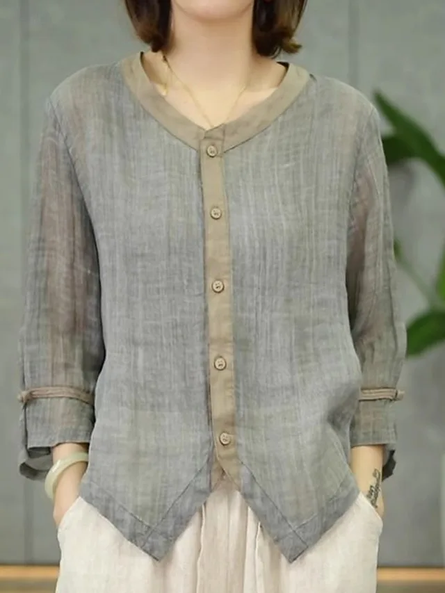 Elegantes Baumwoll-Leinen-Hemd mit V-Ausschnitt und Knöpfen. Perfekt für jeden Tag. Jetzt stilvoll entdecken.