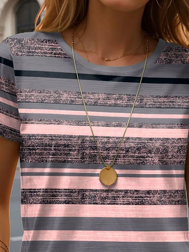 Lässiges gestreiftes T-Shirt mit Rundhals und Kurzarm. Perfekt für den Sommer und jeden Tag – jetzt stilvoll entdecken.