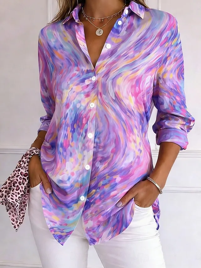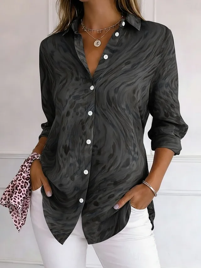 Stilvolles Damenhemd mit Grafikdruck, Hemdkragen und Langarm. Perfekt für Alltag, Urlaub und elegante Casual-Looks. Jetzt entdecken.