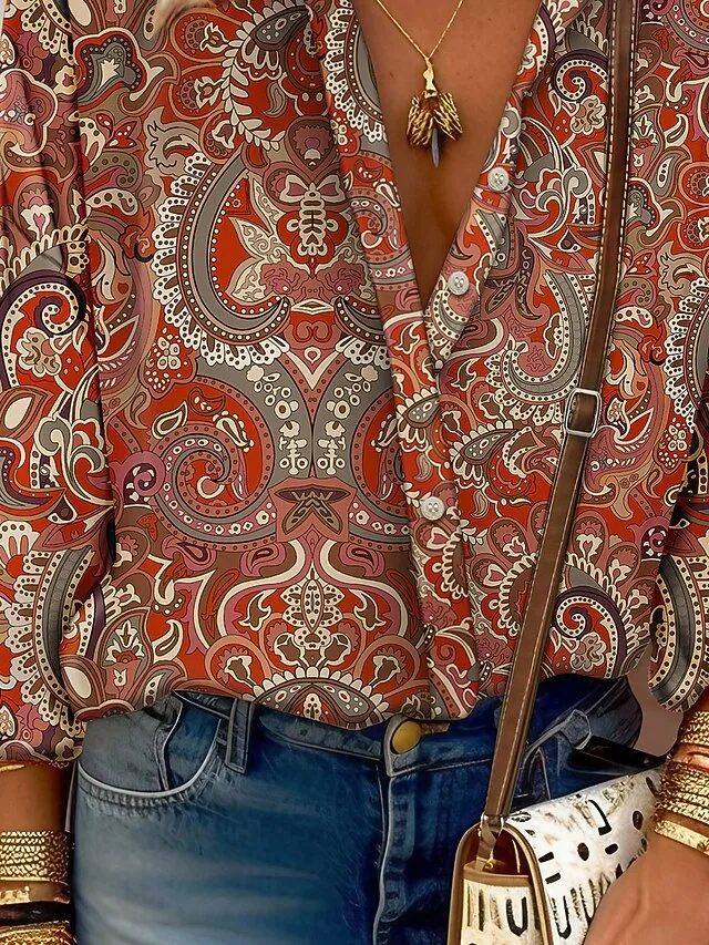 Lässige Paisley-Bluse mit Hemdkragen und Knopfleiste. Stilvoll, vielseitig und perfekt für Alltag oder Ausgehen. Jetzt entdecken.
