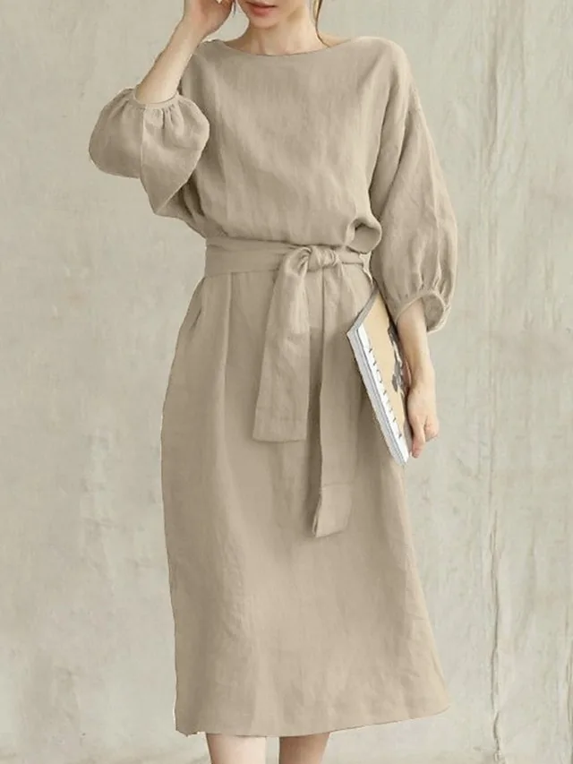 Lässig Normale Passform Einfach Rundhals Dreiviertelarm Minikleid