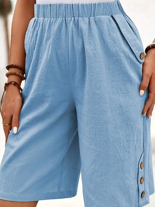 Leichte Damen Shorts aus Baumwoll-Leinen-Mix mit elastischem Bund und Taschen. Jetzt stilvoll und bequem entdecken.