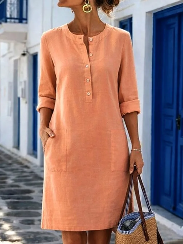 Zeitloses Midikleid mit Rundhalsausschnitt und Langarm. Vielseitig für Alltag und Saison. Jetzt entdecken.