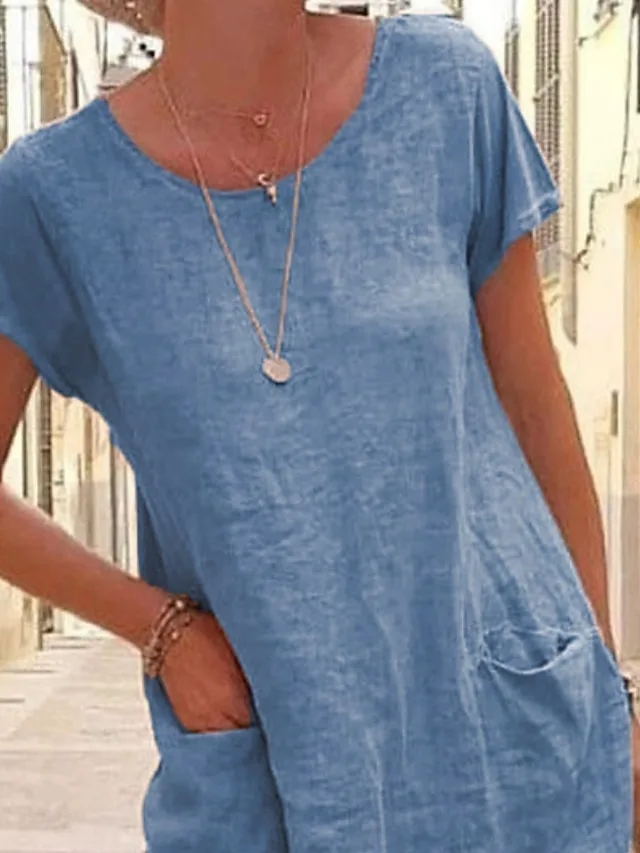 Leichtes Minikleid aus Baumwolle-Leinen mit Rundhalsausschnitt und kurzem Arm. Ideal für Alltag und Urlaub – jetzt entdecken.